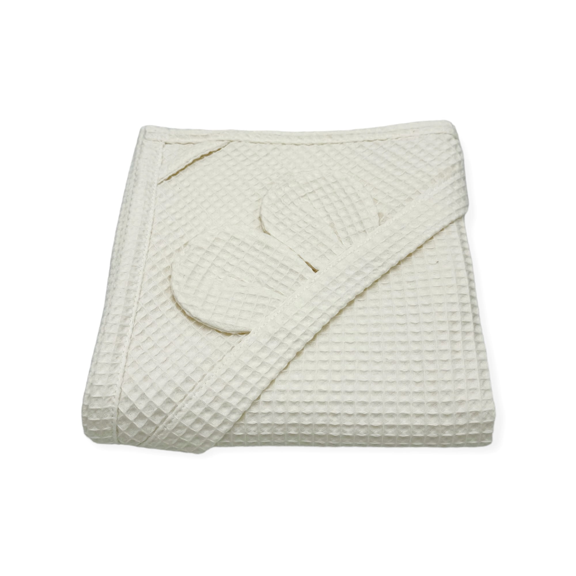 Nasze wyjątkowe ręczniki niemowlęce szyjemy z 100% tkaniny bawełnianej wafel. Idealne okrycie dla maluszków z uroczymi misiowymi uszkami. Ręczniki z tkaniny waflowej są niezwykle delikatne oraz bardzo chłonne. Ręczniczek waflowy uszyty jest z certyfikowanej tkaniny, dzięki czemu jest bezpieczny dla delikatnej skóry noworodków i dzieci. Posiada uroczy kapturek, który ochroni główkę przed chłodem po kąpieli lub na basenie czy na plaży.