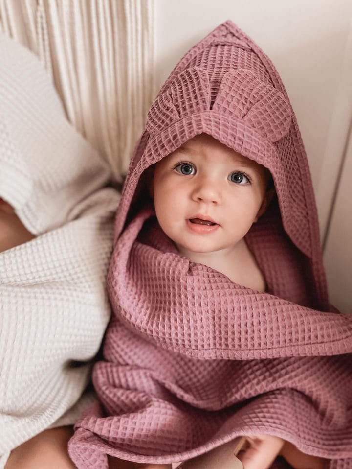 Nasze wyjątkowe ręczniki niemowlęce szyjemy z 100% tkaniny bawełnianej wafel. Idealne okrycie dla maluszków z uroczymi misiowymi uszkami. Ręczniki z tkaniny waflowej są niezwykle delikatne oraz bardzo chłonne. Ręczniczek waflowy uszyty jest z certyfikowanej tkaniny, dzięki czemu jest bezpieczny dla delikatnej skóry noworodków i dzieci. Posiada uroczy kapturek, który ochroni główkę przed chłodem po kąpieli lub na basenie czy na plaży.
