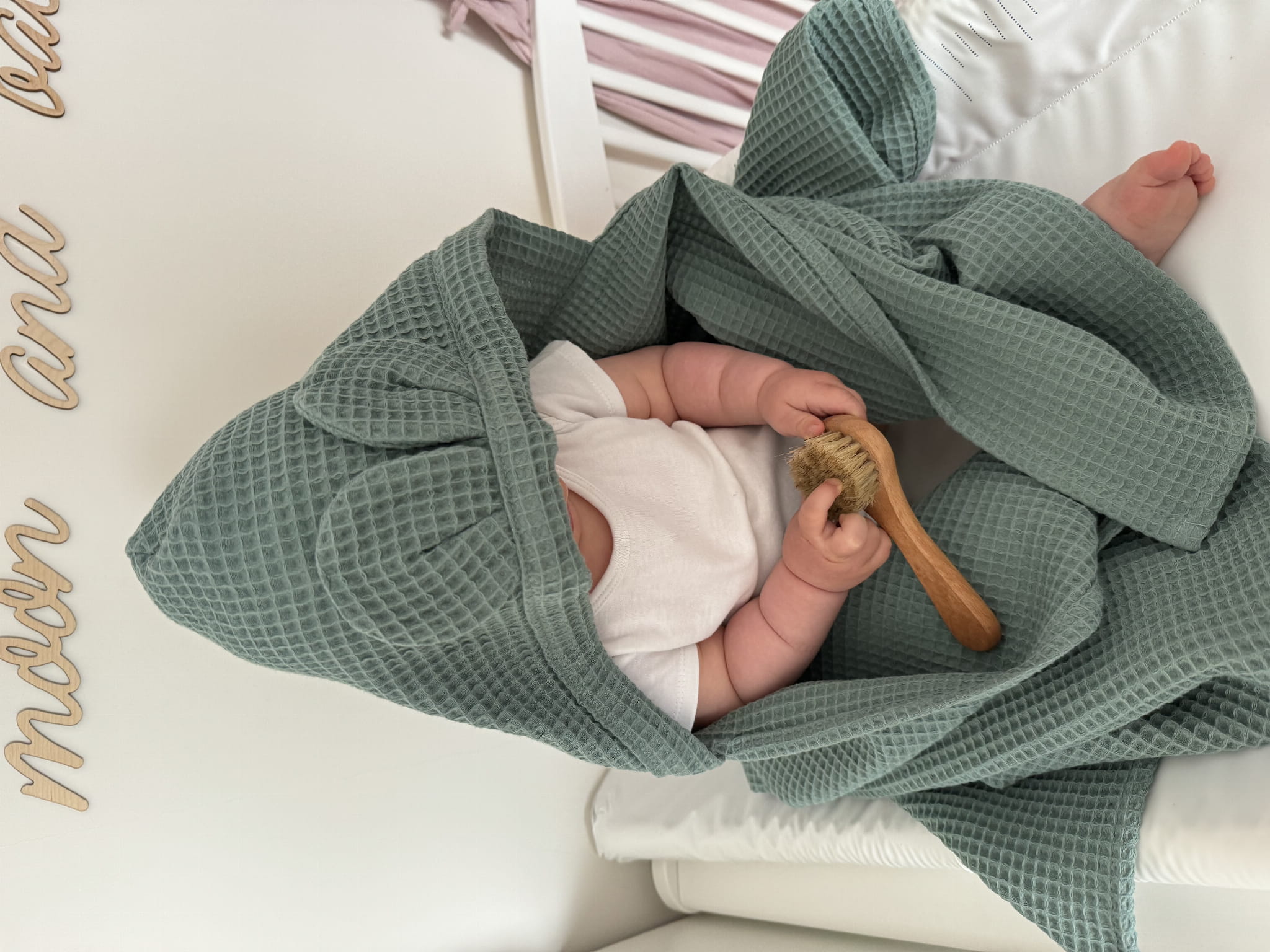 Nasze wyjątkowe ręczniki niemowlęce szyjemy z 100% tkaniny bawełnianej wafel. Idealne okrycie dla maluszków z uroczymi misiowymi uszkami. Ręczniki z tkaniny waflowej są niezwykle delikatne oraz bardzo chłonne. Ręczniczek waflowy uszyty jest z certyfikowanej tkaniny, dzięki czemu jest bezpieczny dla delikatnej skóry noworodków i dzieci. Posiada uroczy kapturek, który ochroni główkę przed chłodem po kąpieli lub na basenie czy na plaży.