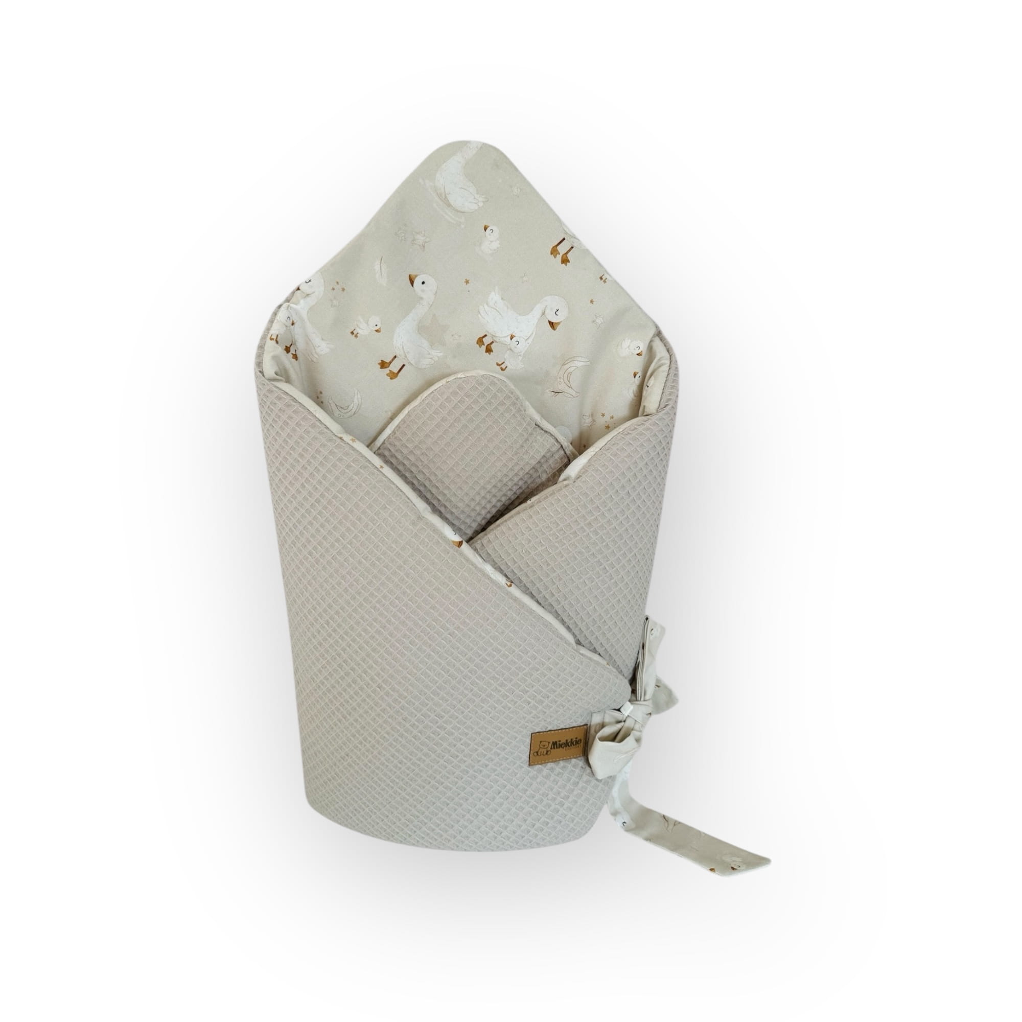 Dostępny w różnych kolorach i wzorach, pasujących do każdej wyprawki, nasz rożek to doskonały prezent na narodziny lub uzupełnienie wyprawki niemowlęcej.